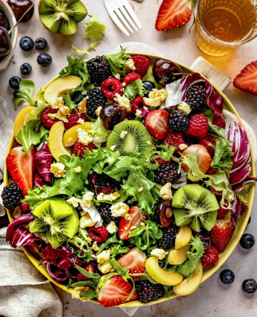 Watermelon, mint, and feta for a sweet-salty surprise Stone fruits like peaches and plums with a drizzle of honey and basil Berries with citrus zest and a splash of orange juice