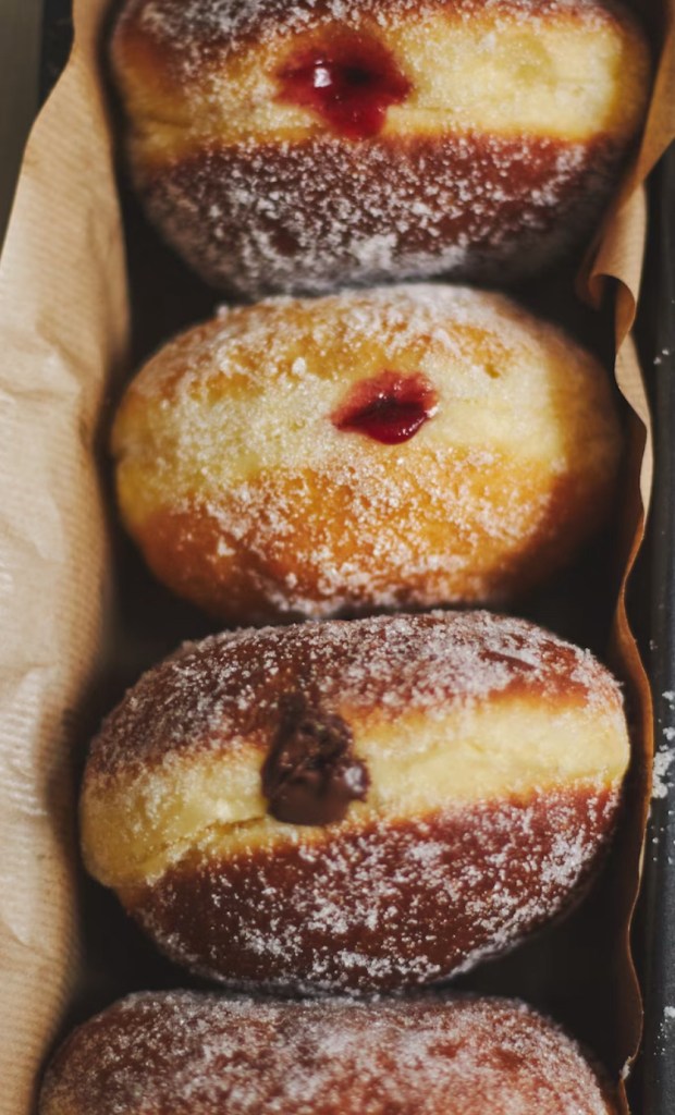 Here’s an elevated take on the classic jelly doughnut—with a richer dough, a punchier homemade fruit filling, and a hint of citrus zest to balance the sweetness. This modernized version is inspired by artisan bakery trends while still honoring the pillowy, nostalgic goodness of the original.