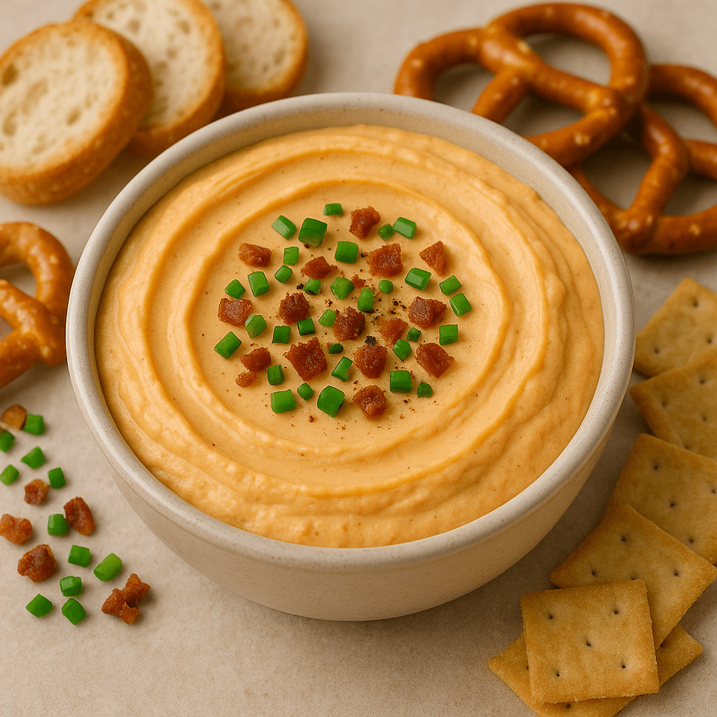 Serve: Garnish with chives or parsley if desired. Serve chilled or at room temperature with soft pretzels, crackers, sliced baguette, or fresh vegetables.