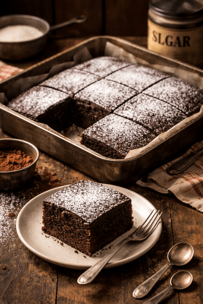 1. Wartime Chocolate Depression Cake (No Eggs, Milk, or Butter)